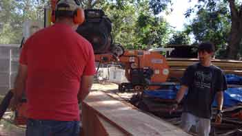 The mill creates building materials from fallen timber. Rough cut planks or heavy beams emerge onsite with our portable mill. Let Doug assess the suitability of your standing timber.